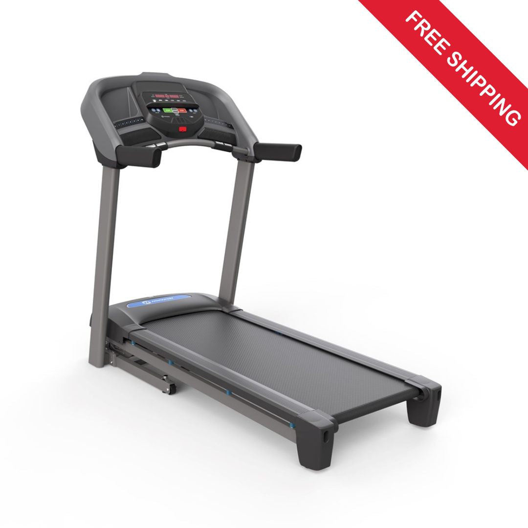 The Horizon T101 Treadmill is simply sophisticated performance. It's a best-selling treadmill for a reason. With an integrated fan, easy assembly and a folding frame, the T101 is a great balance of features, quality and value. Great for walkers or light runners who want a simple, no-fuss workout and the easy 15-minute assembly gets you moving in no time.