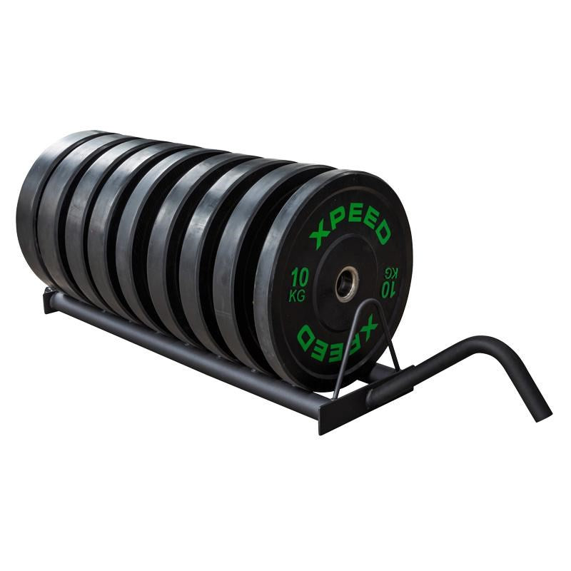 The easy way to store your bumper plates when they're not in use. Save space and save the potential for injury with this simple and effective storage solution.